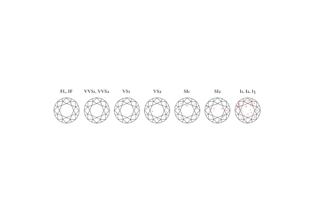 Both mined diamonds and lab-grown diamonds have clarity imperfections called inclusions. These are formed within the diamond as it grows and the value of the diamond is determined by the number of, type, position and visibility of inclusions. Clarity is graded from flawless to included, with flawless being the rarest.